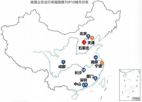 《报告》还统计了各大城市地面公交出行的幸福指数。2020年第二季度,石家庄、宁波、天津等城市的幸福指数较高,说明其公交运行效率、可靠性、相对城市交通水平的综合表现较好。其中,石家庄地面公交出行幸福指数最高,达到78.43%,与正理想值最接近;天津和南京则分别位列超大城市和特大城市“幸福指数”的首位。