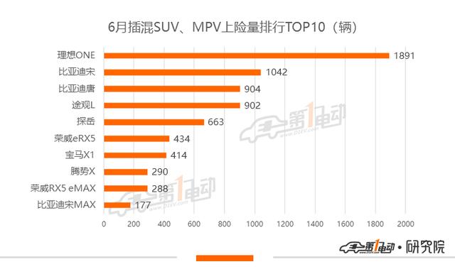 插混SUV/MPV方面,理想ONE和比亚迪宋DM上险量破千,两款车型均为非运营使用,个人上险占比分别为85.2%和97.2%。