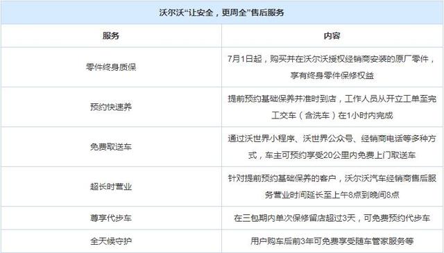 近日,沃尔沃汽车推出了一项名为的全新售后服务理念,具体包括零件终身保、预约快速养、免费取送车、超长时营业、尊享代步车、全天候守护等六大服务。同期还推出了购车抵扣、金融免息、置换及保养等多重福利。具体包括: