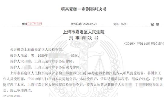 根据该文书显示,项某曾供职与国有独资公司上海国际汽车城(集团)有限公司,2016年到2017年因工作需要被委派至民办非企业上海新能源汽车数据中心担任综合部主管期间,主要负责审核新能源车企新车型数据接入符合性等工作。在此期间,项某利用其职务之便,多次收受贿赂共计7万余元,具体如下: