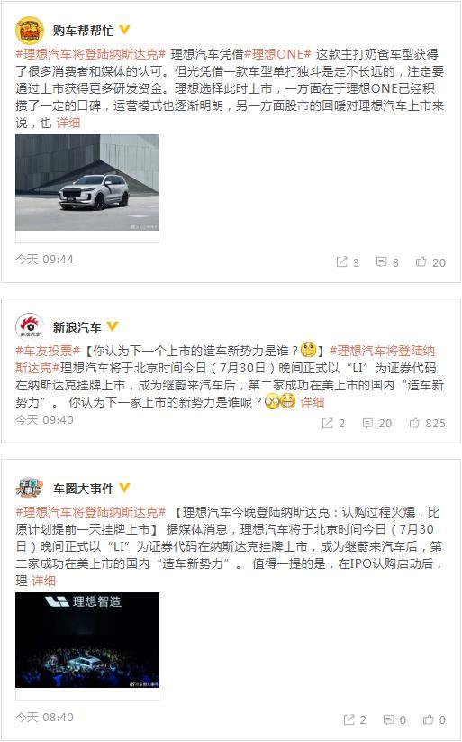据内部消息透露,@理想汽车 将于北京时间今日(7月30日)晚间正式以“LI”为证券代码在纳斯达克挂牌上市,理想汽车发行定价每股11.5美元,募资11亿美元,高出每股8-10美元的定价指导区间,这是自2018年3月爱奇艺在纳斯达克进行的24亿美元IPO以来,中国在美国的最大IPO。