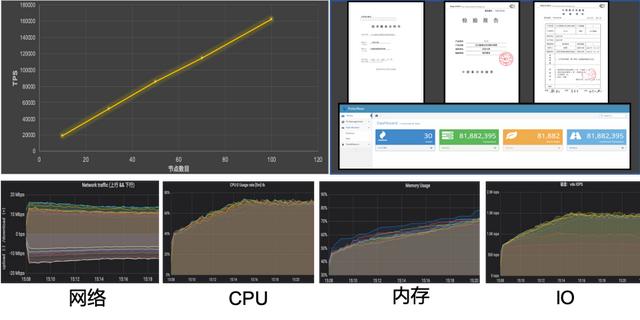 本次测试环境为部署在全国10个不同城市的机房中的100个公有云节点,每个节点之间均通过固定上限带宽的公网通信。公有云虚拟机的配置为双核、4GB内存、20Mbps(2.5MB/s)网络带宽、设备硬件配置及网络环境更加接近实际应用场景生产环境。测试结果显示北大数瑞分布式账本系统在公网环境、100节点规模下的存证性能可超过16万TPS;而且随着节点数目的增加,整个网络的吞吐率呈现线性增加趋势,实测效果可以更好满足大数据、工业互联网、物联网等高并发场景的实际需求。