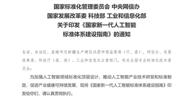 “车联网与人工智能结合!”这一宗旨,成为《国家新一代人工智能标准体系建设指南》(以下简称《指南》)的核心之一。8月7日,由国家标准委、中央网信办、国家发改委、科技部、工信部等五部门联合发布的《指南》,从国家层面作出部署。