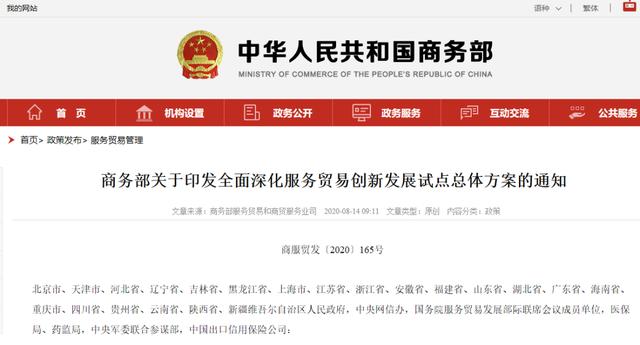 今天(8月14日),商务部网站刊发《商务部关于印发全面深化服务贸易创新发展试点总体方案的通知》,通知明确,在京津冀、长三角、粤港澳大湾区及中西部具备条件的试点地区开展数字人民币试点。