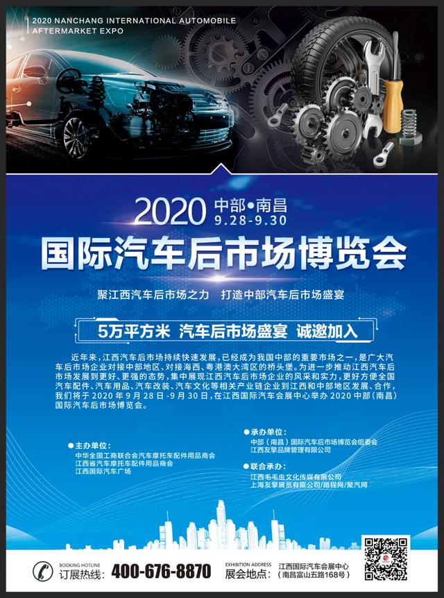 近年来,江西汽车后市场持续快速发展,已经成为我国中部的重要市场之一,是广大汽车后市场企业对接中部地区、对接海西、粤港澳大湾区的桥头堡。为进一步推动江西汽车后市场发展到更好、更强的态势,集中展现江西汽车后市场企业的风采和实力,更好方便全国汽车配件、汽车用品、汽车改装、汽车文化等相关产业链企业到江西和中部地区发展、合作,我们将于2020年9月28-30日,在江西国际汽车中心举办2020首届中部(南昌)国际汽车后市场博览会。